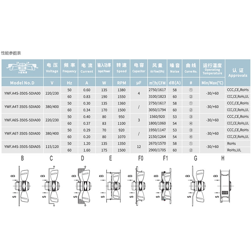 • YWF.A4S-350S-7DIA01冷庫專用排風外轉子低噪聲網罩軸