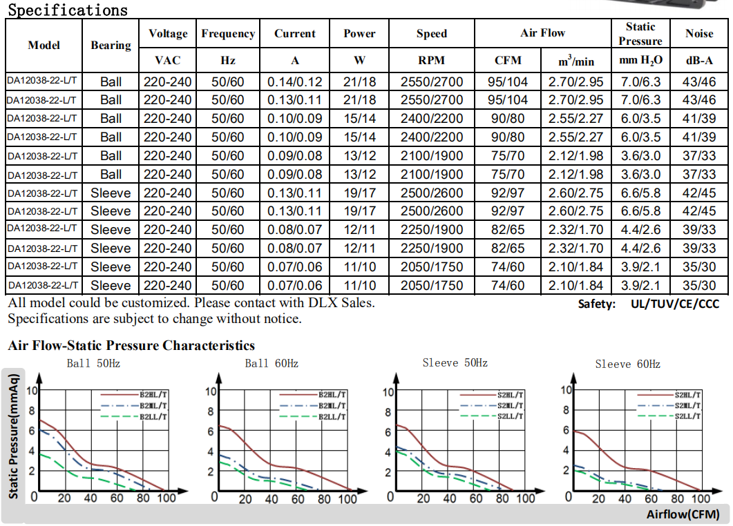 120 x 120 x 38mm DA12038 115/220V(七葉高風壓版)軸流風機12厘米風扇