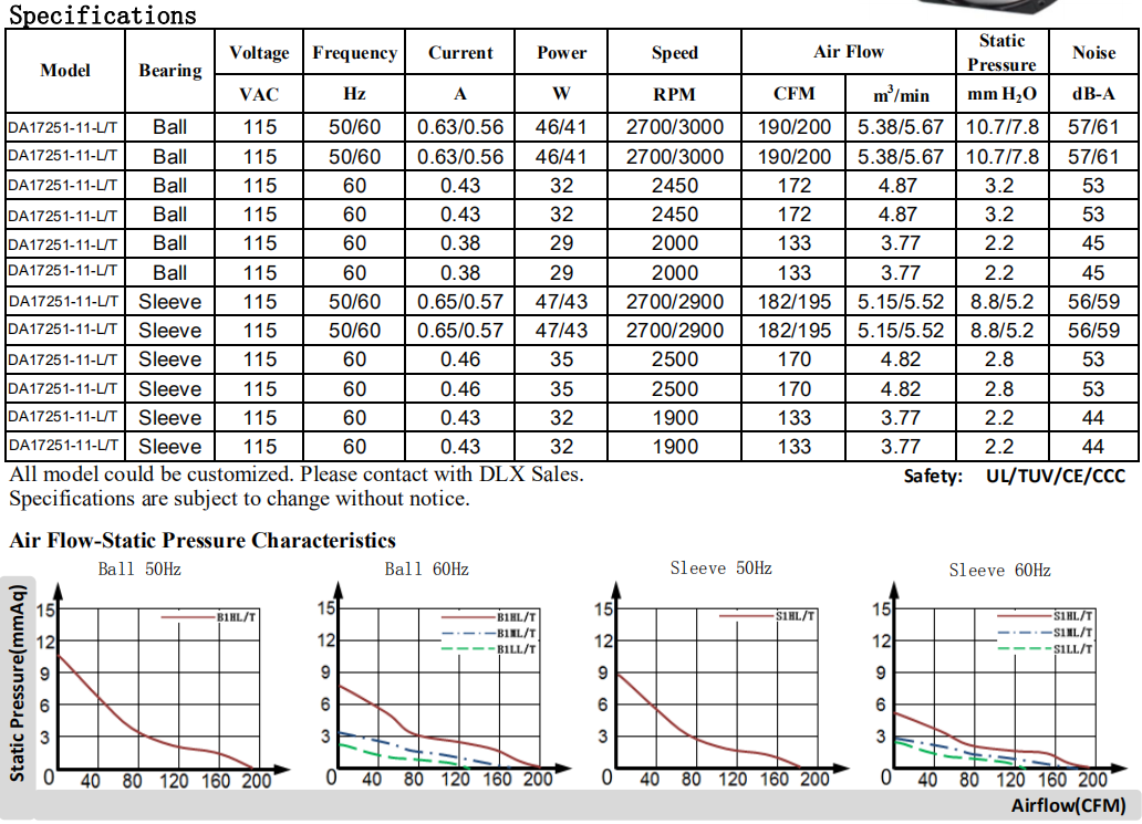 Φ172 x 150 x 51mm DA15050 115/220V七葉高風壓版,廠家直銷可OEM