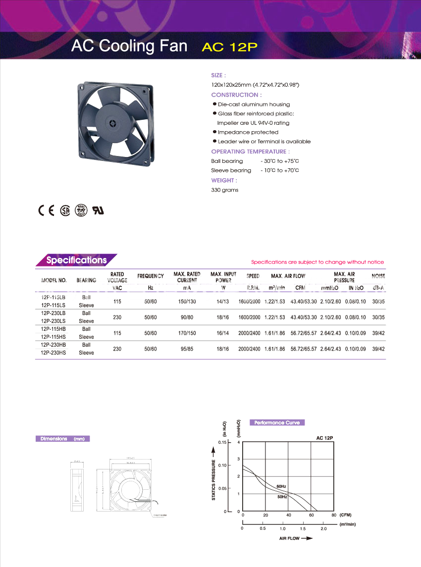 原裝臺灣Bi-sonic百瑞散熱風扇12P-230HB交換器冷氣機12025風扇